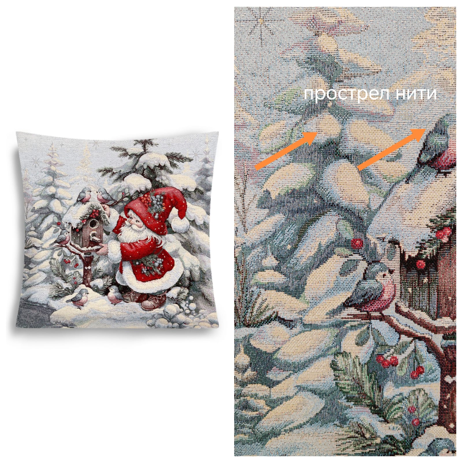 • Новогодние товары для дома / Испанская новогодняя коллекция / Гномы NEW из гобелена - Outlet Гном Кормушка для птиц Наволочка 45х45 см серебро 2520129 New