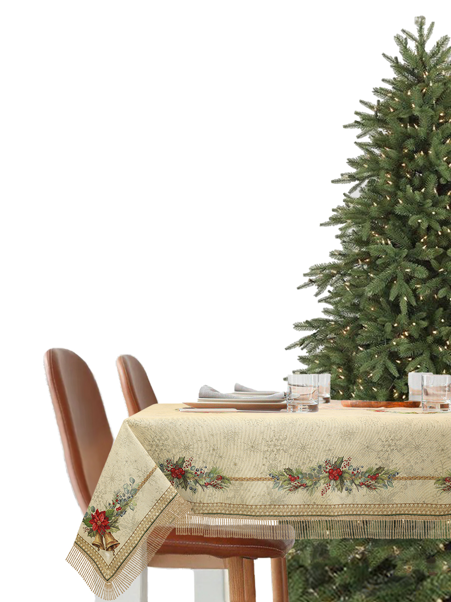 • Новогодние товары для дома / Испанская новогодняя коллекция / Елочные украшения New из гобелена - Елочные украшения Зеленый бордюр Скатерть 155х285 см бахрома 2520017 New