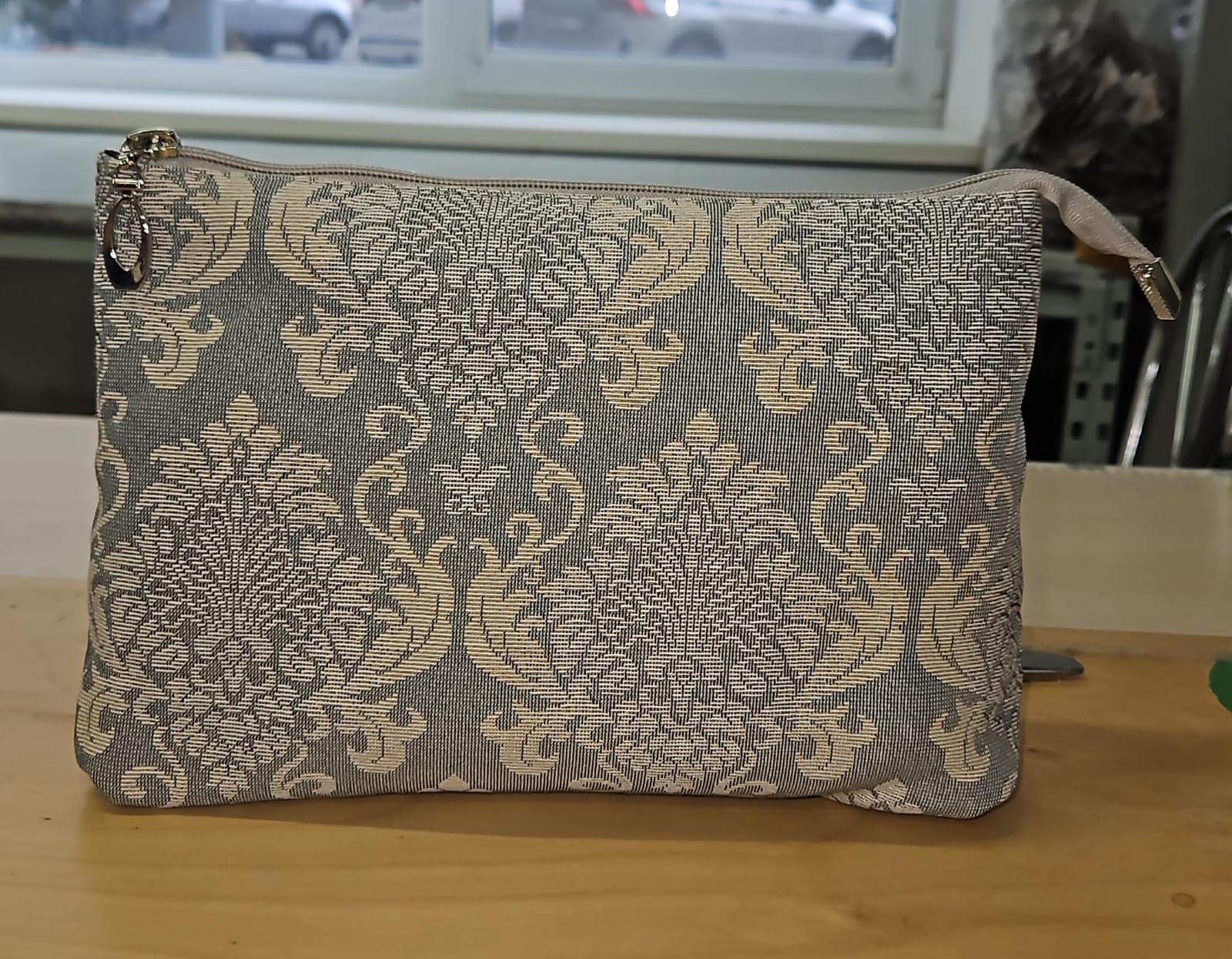 • Сумки / Косметички из гобелена - 1045 Косметичка Розы Дамаск серый Вензеля 25х16х6 см 2520276