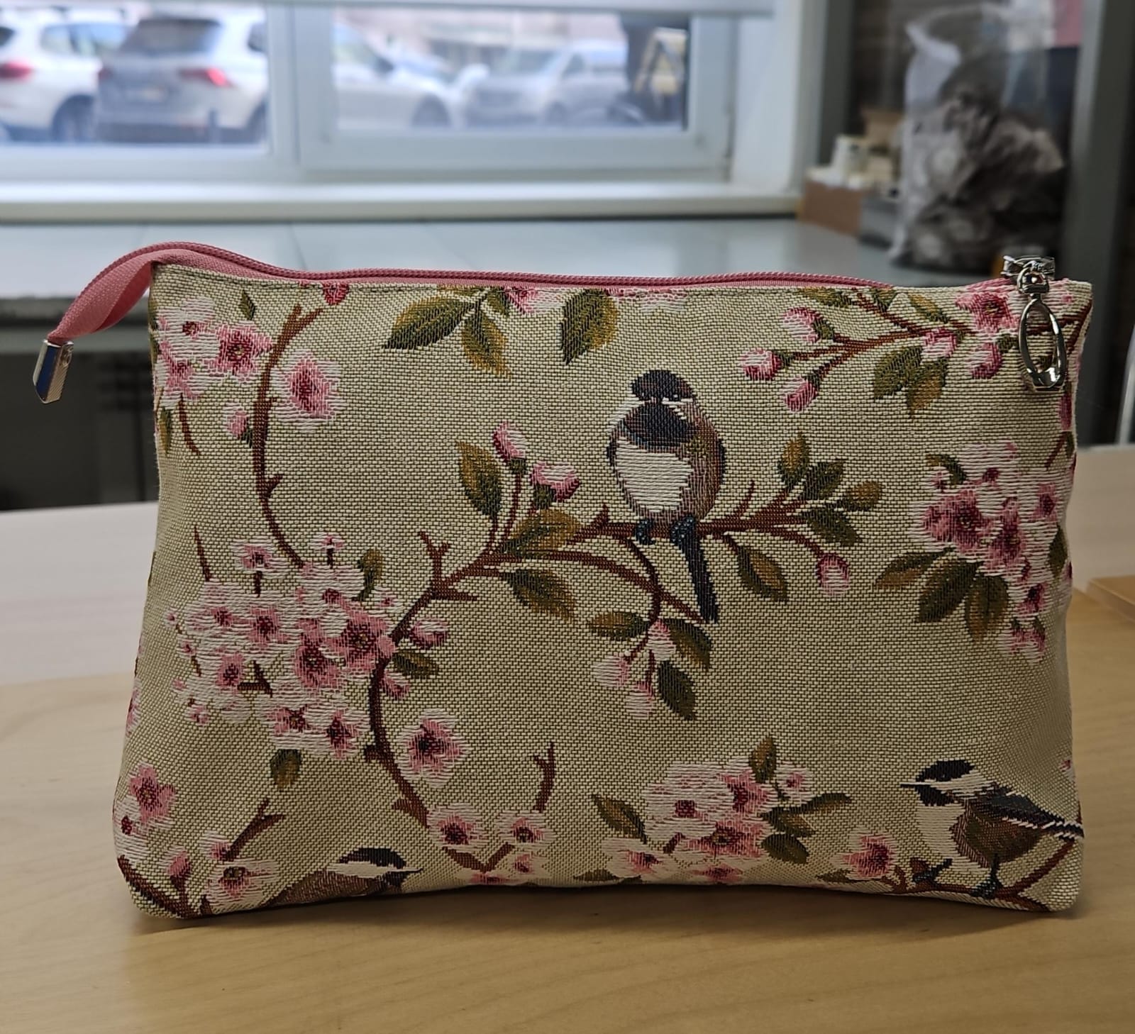 • Сумки / Косметички из гобелена - 1045 Косметичка Сакура и птички беж 25х16х6 см 2520280