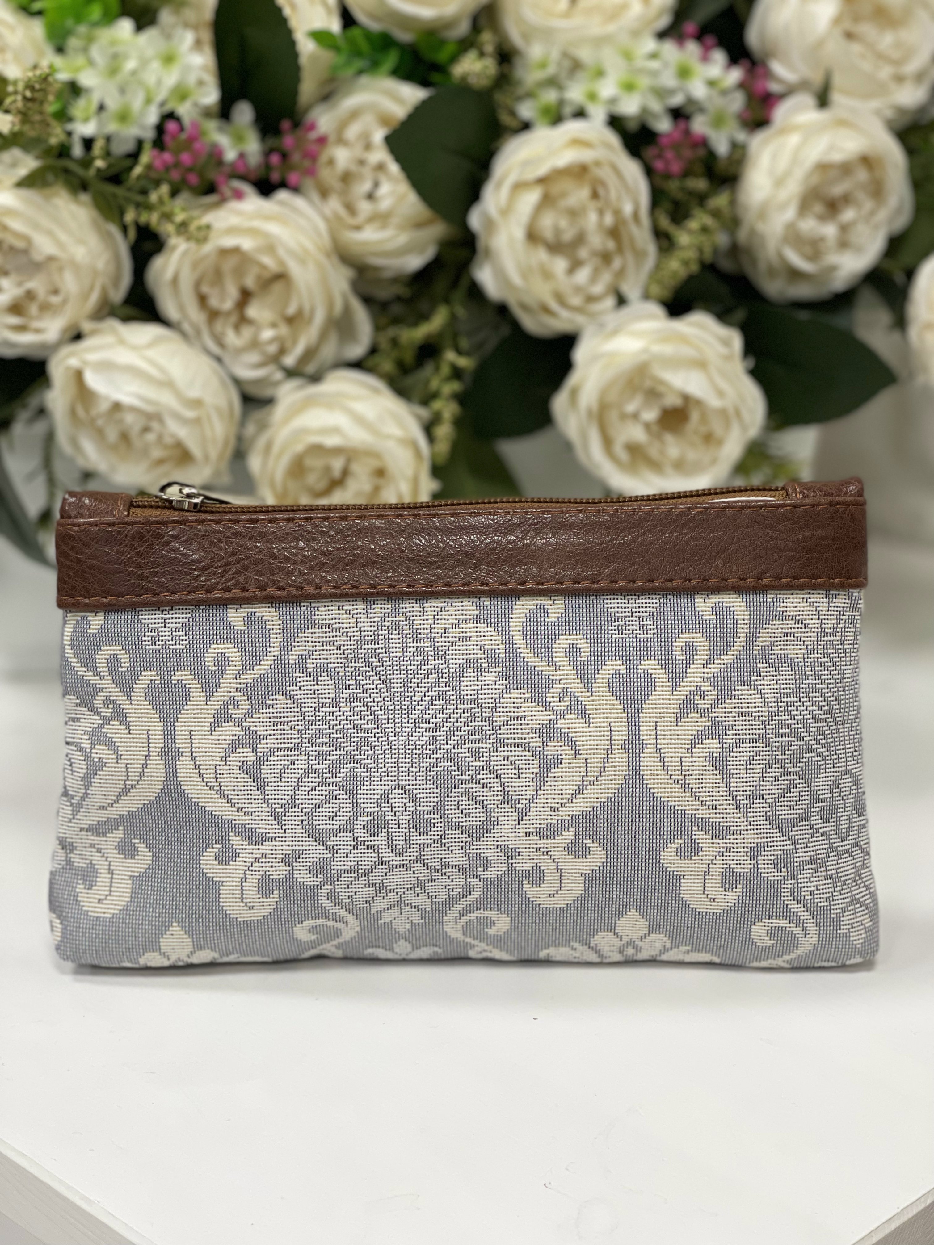• Сумки / Косметички из гобелена - 51 Косметичка Розы Дамаск Вензеля серый фон 21х14х3см 06246