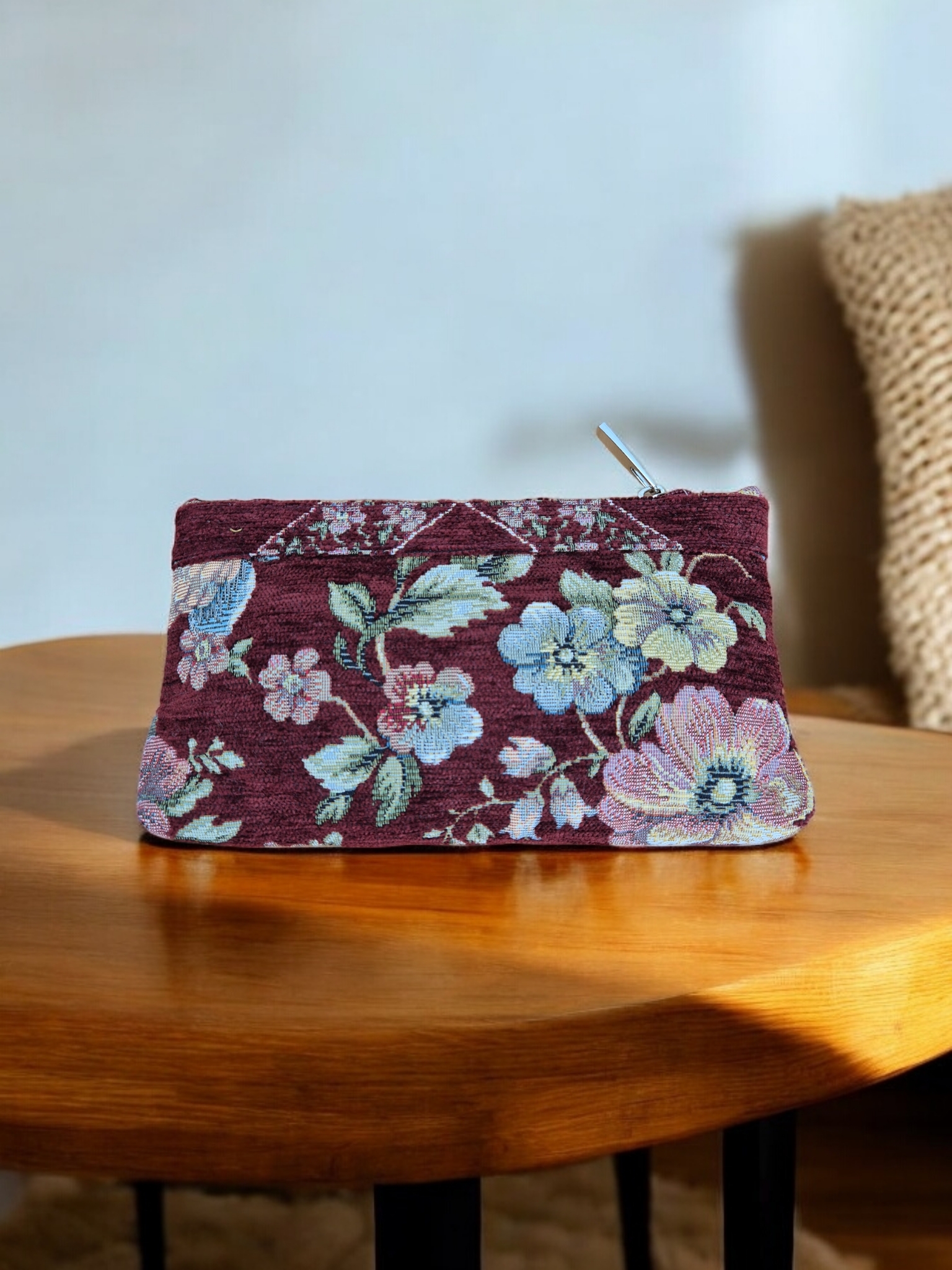 51 Косметичка ЗС Бордо шенилл 21х14х3см 2516975 Цветы
