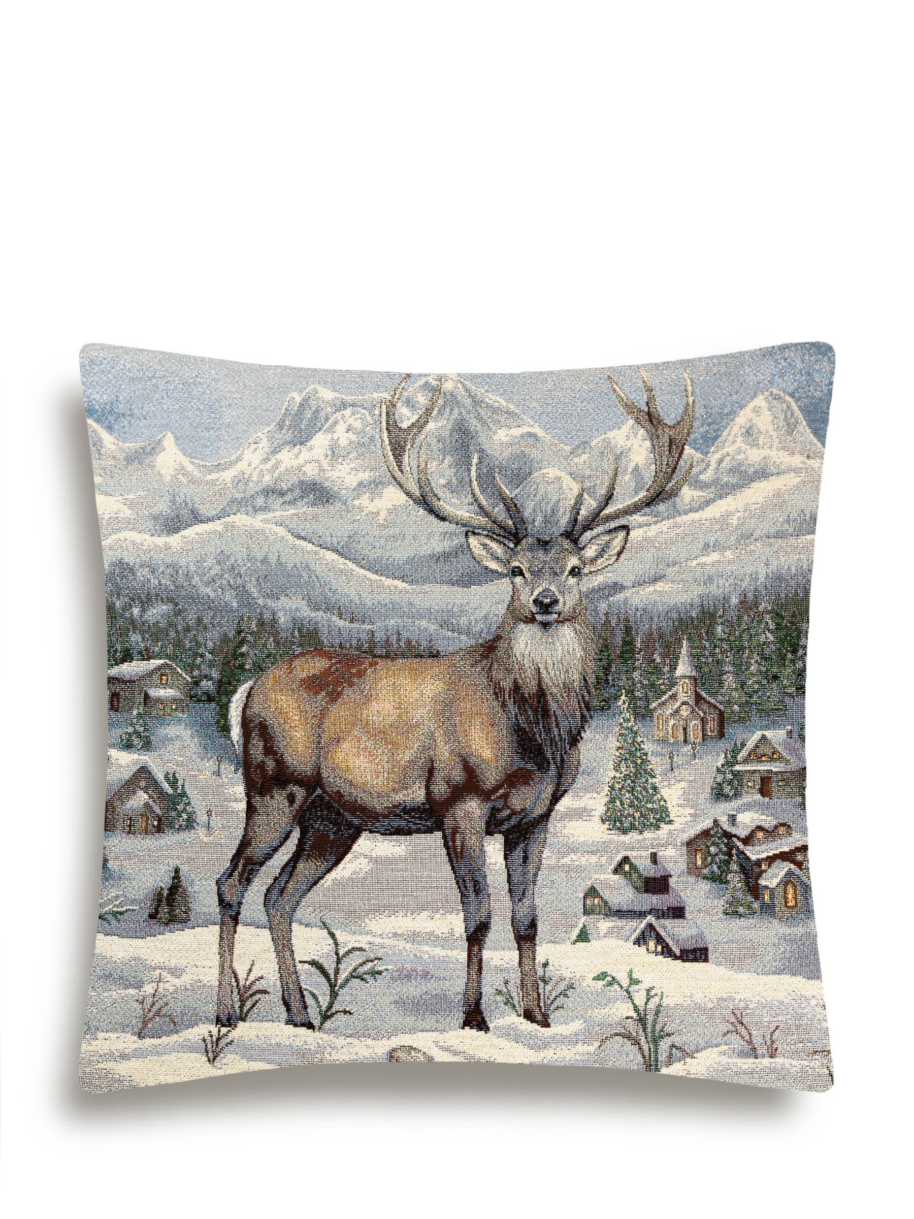 • Новогодние товары для дома / Испанская новогодняя коллекция / Лесные друзья два оленя из гобелена - Лесные друзья Олень Наволочка 45х45 см серебро 2519104 New