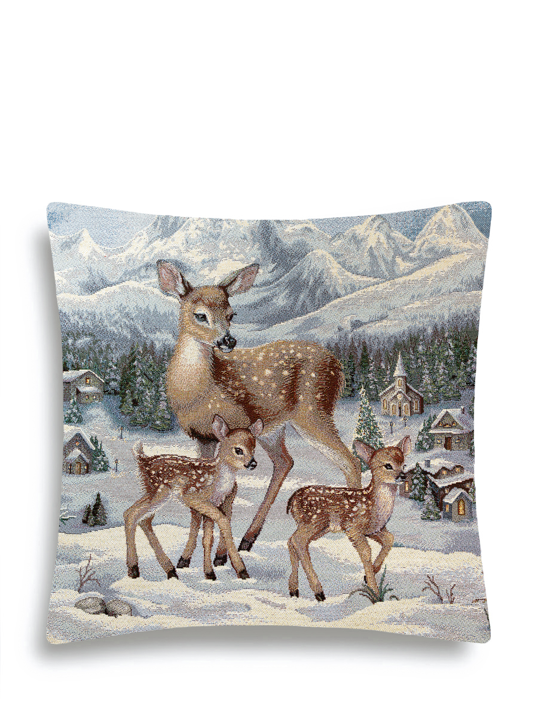 • Новогодние товары для дома / Испанская новогодняя коллекция / Лесные друзья два оленя из гобелена - Лесные друзья Оленята и мама Наволочка 45х45 см серебро 2519103 New