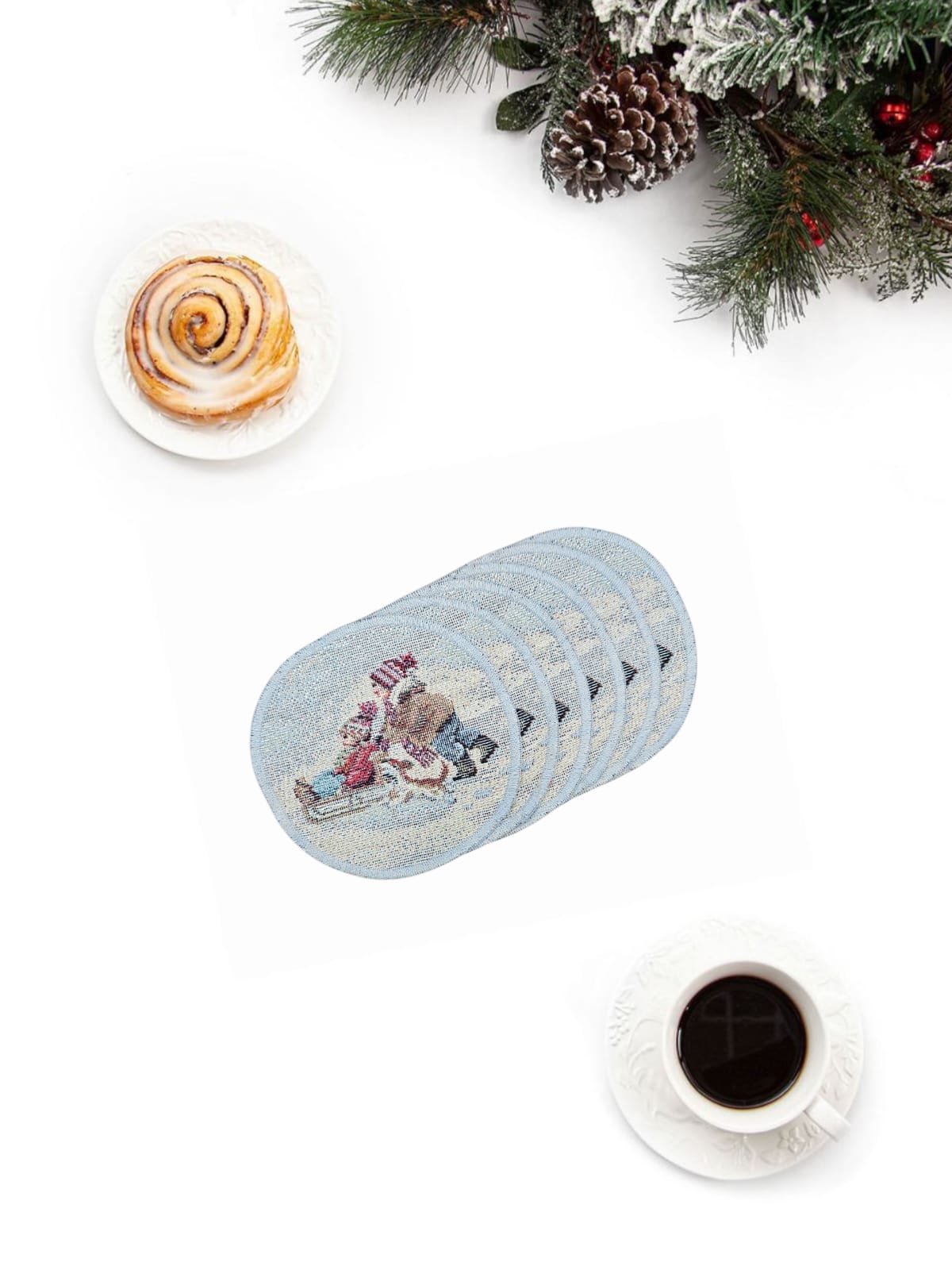 • Новогодние товары для дома / Испанская новогодняя коллекция / Новогодние каникулы New из гобелена - Новогодние каникулы Комплект салфеток 6шт д11 см БТ серебро 2520192