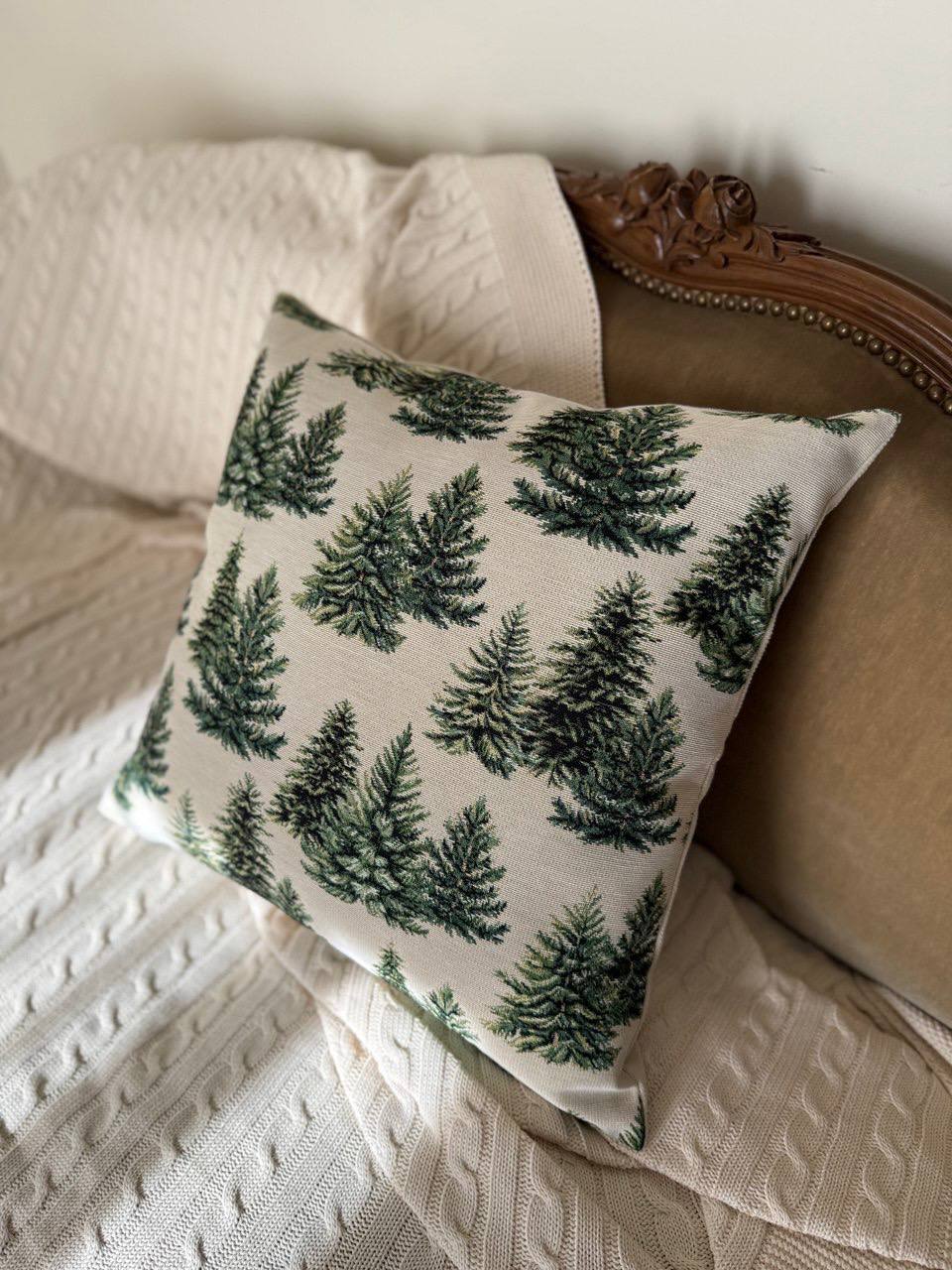 • Новогодние товары для дома / Испанская новогодняя коллекция / Питер Пэн из гобелена - Ели Наволочка 44х44 см 2520322 односторонняя New