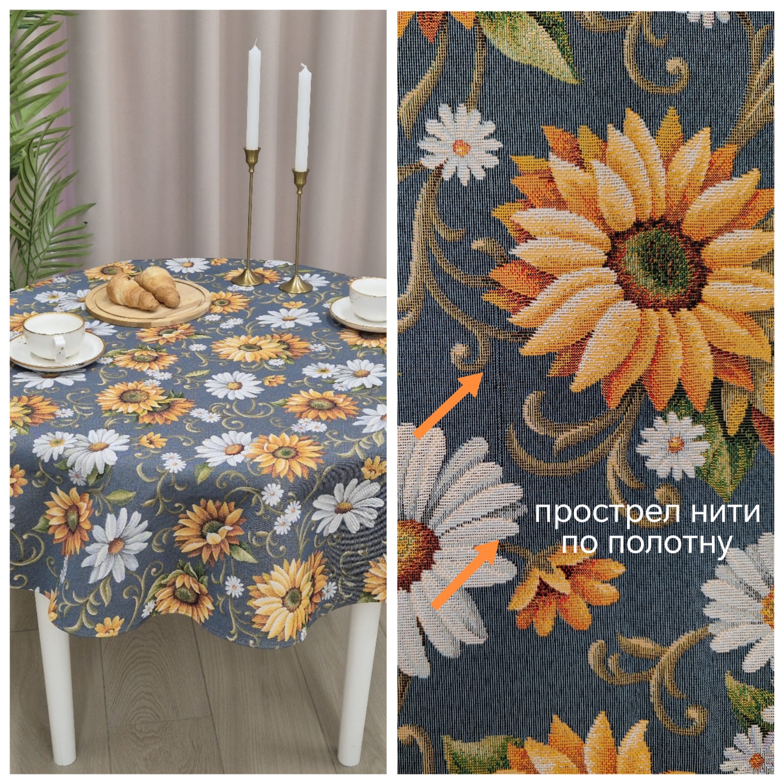 • Всесезонная коллекция текстиля Basic / Подсолнухи и ромашки New из гобелена - Outlet Подсолнухи и ромашки синий фон Скатерть круг д140 см Н/Р 2520058