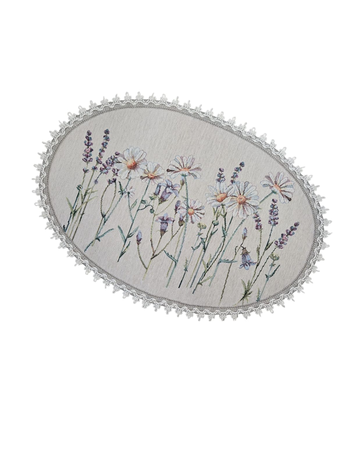 • Всесезонная коллекция текстиля Basic / Ромашки меланж NEW из гобелена - Ромашки меланж Гладкий фон Салфетка овал 34х50 см 2520082