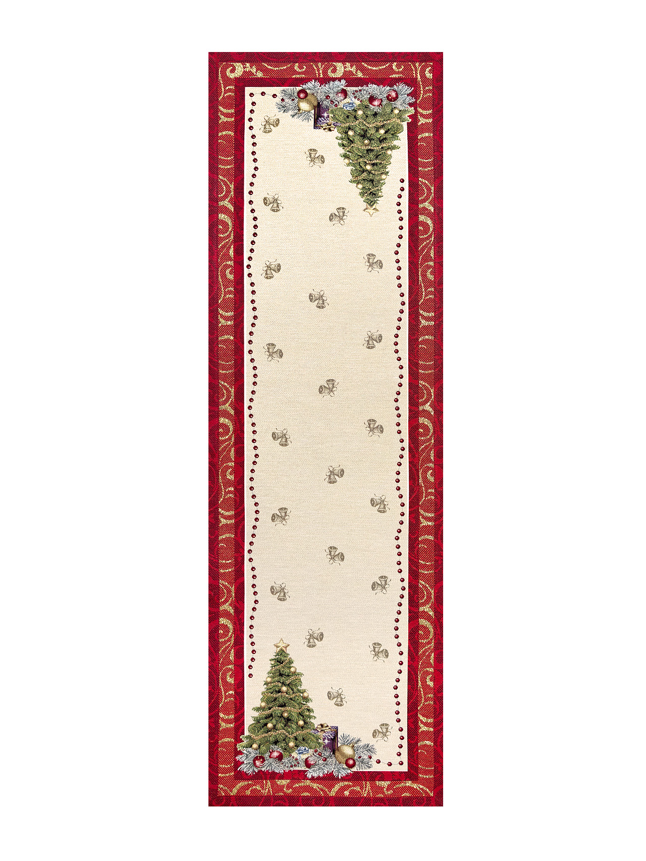• Новогодние товары для дома / Испанская новогодняя коллекция / Рождественская ночь NEW из гобелена - Рождественская ночь красный бордюр Салфетка 42х130 см 2520070
