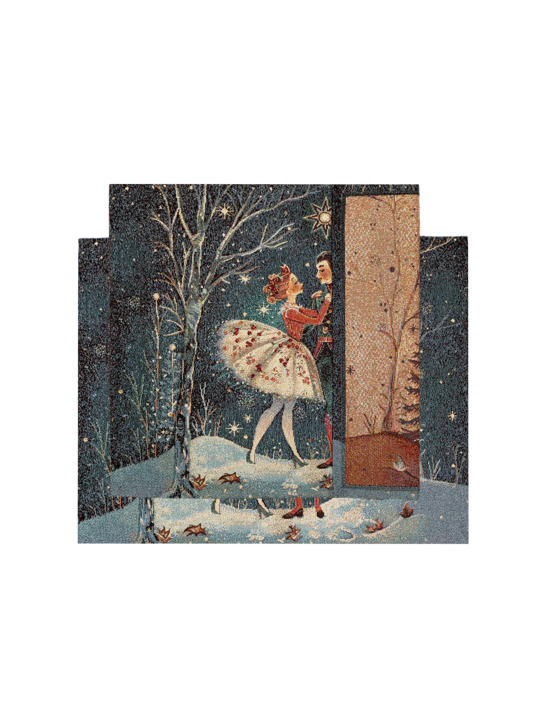 • Новогодние товары для дома / Испанская новогодняя коллекция / Сказки Гофмана Щелкунчик из гобелена - Щелкунчик Балет темный фон Комплект салфеток 2шт 35х45 см серебро 2519121 New
