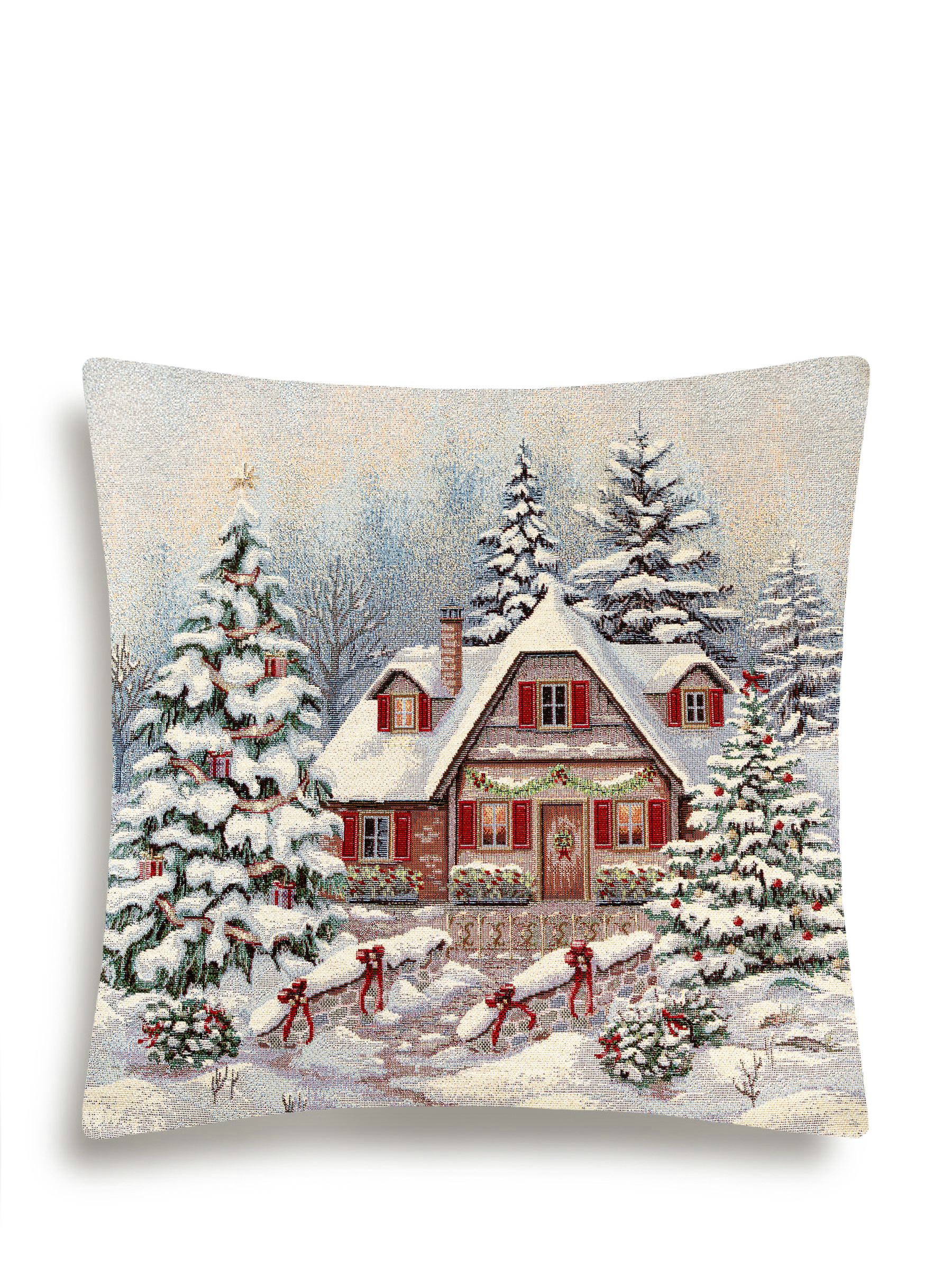 • Новогодние товары для дома / Испанская новогодняя коллекция / Снеговики NEW из гобелена - Снеговики Домик Наволочка 44х44 см 2519096 серебро NEW