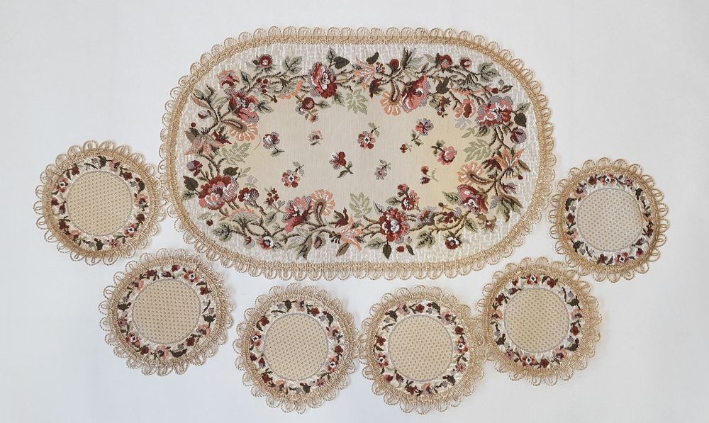 Рисунок создается переплетением нитей различных цветов и фактуры. Состав ткани: хлопок ( дающий фактуру и приятную тактильность ) и синтетические нити ( придающие износостойкость ). Плотность гобелена 410 г на кв.метр.