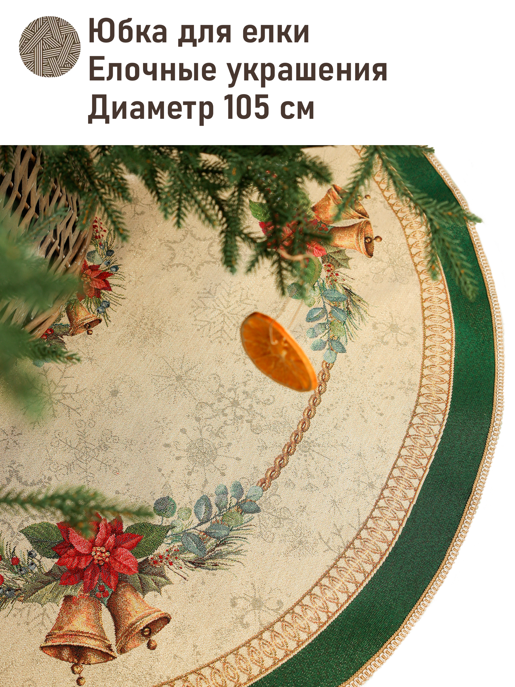 • Новогодние товары для дома / Испанская новогодняя коллекция / Юбки для елки из гобелена - Елочные украшения Зеленый бордюр Юбка для елки д105 см тесьма золото 2518962